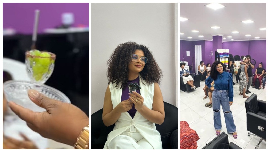 Pimentel revela que a ideia surgiu após estudos em marketing, nos quais buscava maneiras de se destacar no mercado de beleza. “Utilizamos uma linha de cremes com essência de uva, famosa entre as clientes pelo aroma. Então, pensei em complementar essa experiência sensorial servindo uvas no salão, alinhando tudo com o nosso conceito de marketing”, explica.