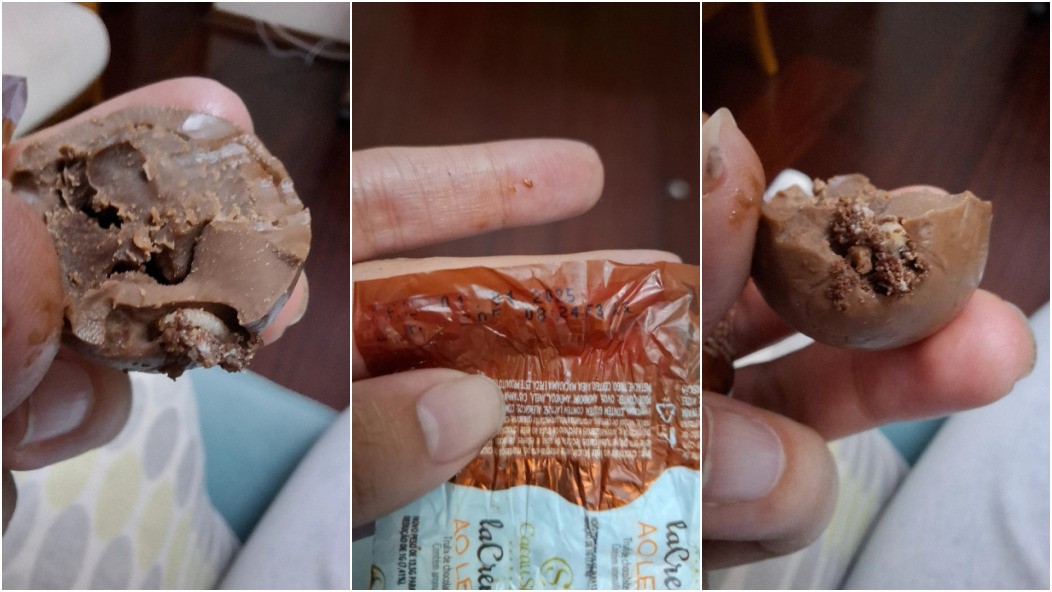 “Ontem (18/3) comi uma trufa da Cacau Show e fui surpreendida negativamente. A trufa comprada no sábado (15/3) com vencimento em 01/04/2025 estava com uma larva”, disse.