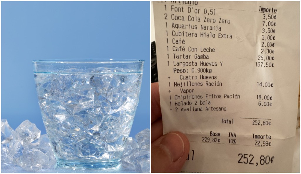 Valor total da refeição, que incluiu uma lagosta de quase 1 kg, foi de cerca de R$ 1,5 mil Um turista espanhol, chamado Antonio Barbeito, compartilhou uma insatisfação no X no último dia 4 de agosto, alcançando milhares de visualizações e centenas de comentários. De acordo com ele, um restaurante – que ele não quis identificar – teria cobrado 3 euros por cada copo de gelo servido (cerca de R$ 18, na cotação atual). Como foram dois copos, a cobrança foi o equivalente a R$ 36.