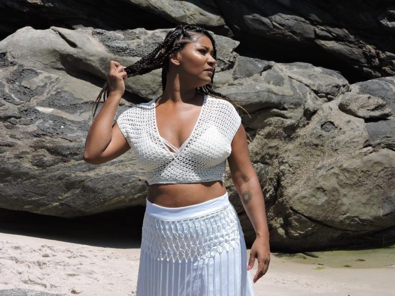“Eu digo que a minha marca é sustentável porque [o conceito] está impregnado com a nossa essência periférica, em procurar ter um comércio justo e solidário, que valoriza a mão de obra. O meu ateliê conta com o apoio de costureiras e crocheteiras da minha região, o que gera um impacto socioeconômico no entorno. Isso é trabalhar a sustentabilidade na moda, pois quando eu cresço, outras pessoas crescem junto”, conta.