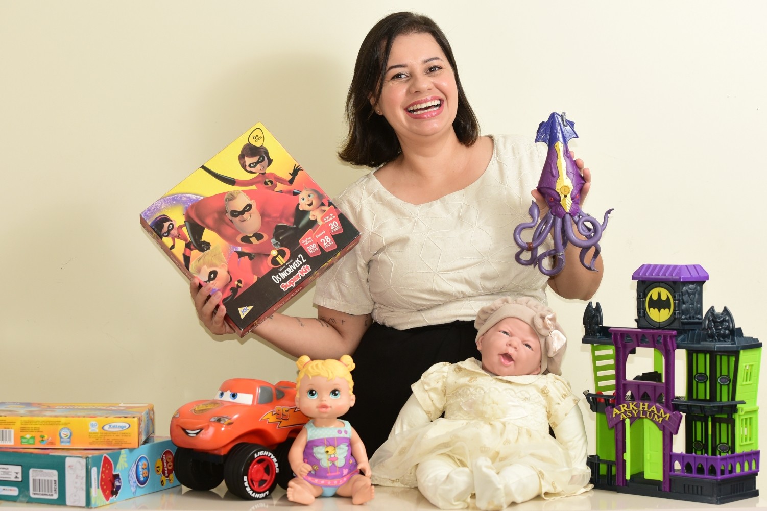 Santos recebe produtos de todas as partes do Brasil que passam por uma triagem antes de chegar à prateleira virtural. “Analiso todos os itens. Caso seja necessário higienizar, cobro uma taxa para isso. Se for um brinquedo que não tiver condições de ser vendido, mas ainda pode ser utilizado, doamos para alguma instituição de caridade. O fornecedor também pode optar por retirar o brinquedo”, diz. “Para decidir o preço do produto, avalio a qualidade e comparo com o valor de venda de um brinquedo similar novo.”