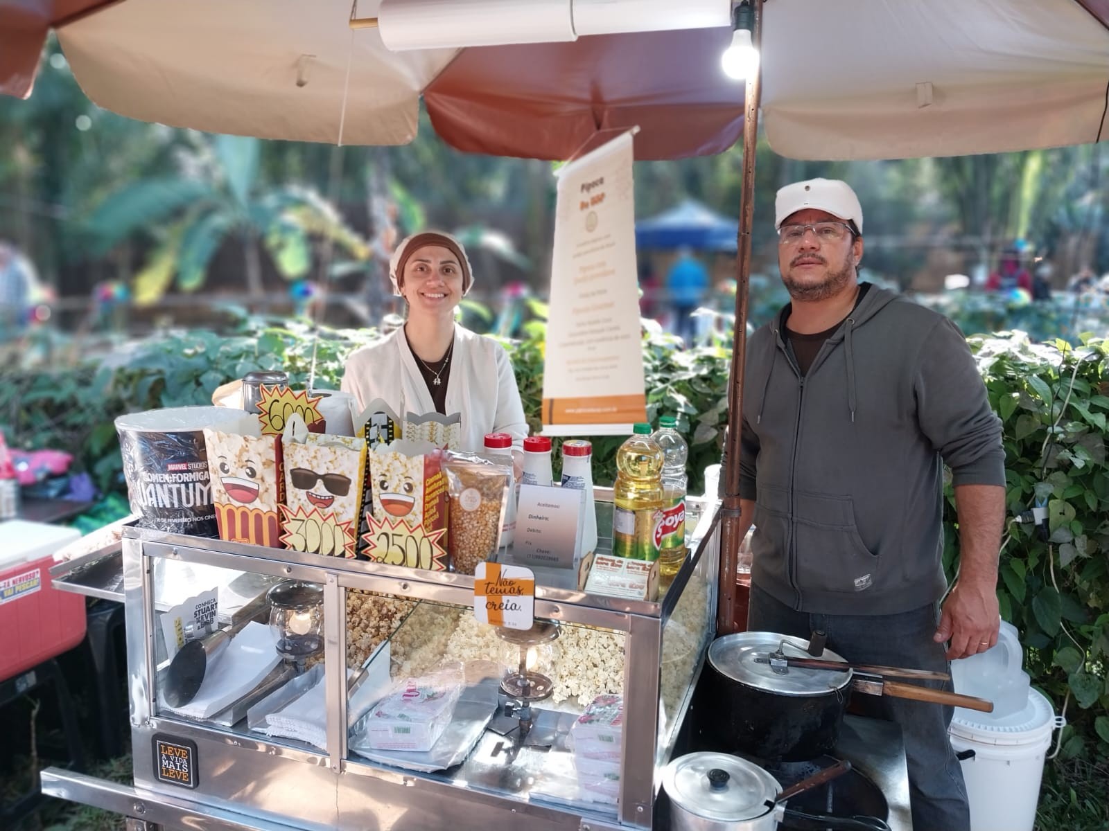 Após um ano de tratamento, em 2018, Seu Luiz faleceu, aos 71 anos. “Em um ano tomando conta do carrinho de pipocas, eu senti o legado do meu pai. Decidi deixar a minha oficina mecânica com o meu irmão e me dedicar às pipocas”, reforça. Hoje, Vieira conta também com o apoio da esposa, Cintia Pereira, 40 anos, para tocar o negócio.