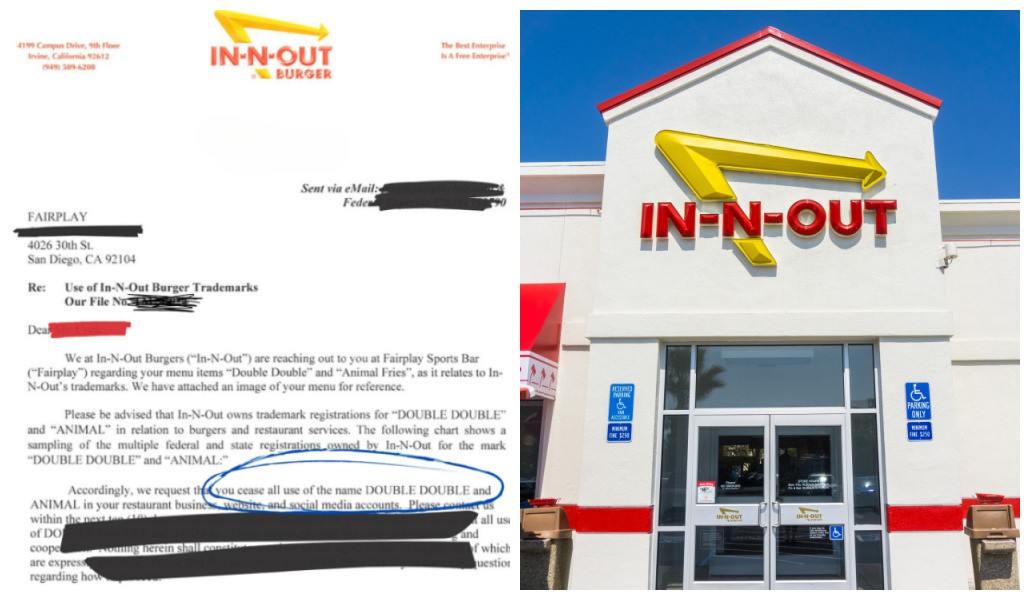 Segundo o In-N-Out, o Fairplay teria copiado os nomes “double double” e “animal fries”. Como resultado da notificação legal, o restaurante precisou alterar os pratos para “burger burger” e “secret menu fries”, respectivamente. Após a resolução do caso, o bar esportivo compartilhou a situação em seu perfil no Instagram, com imagens do pedido de fechamento feito pela rede de fast-food.