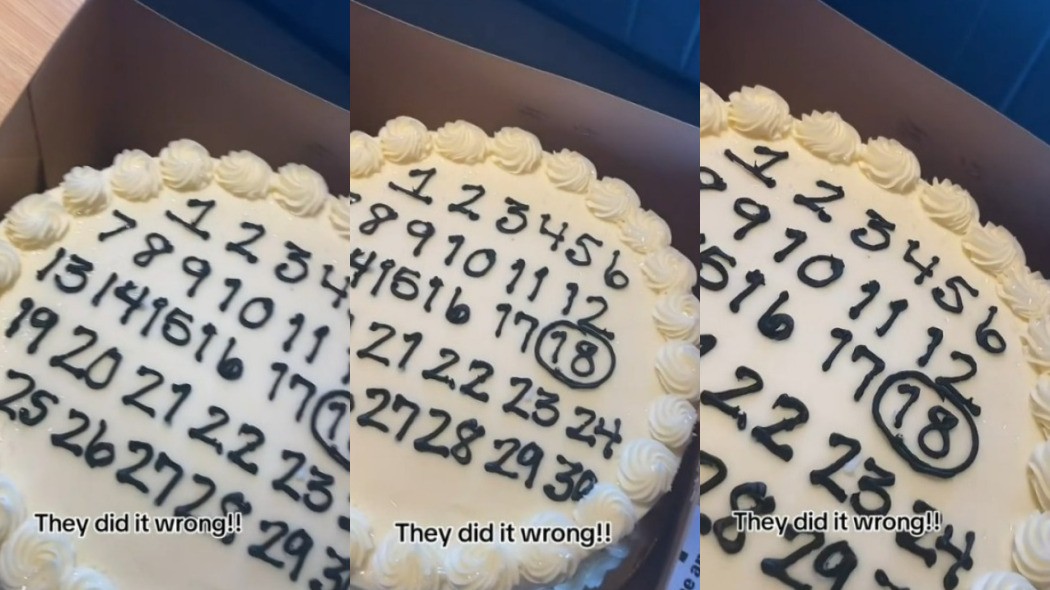 No entanto, a internauta fez questão de compartilhar a decoração que não saiu como havia planejado. Isso porque o bolo tem os números de 1 a 30 divididos em cinco fileiras em cima do glacê. O número 18 foi circulado, indicando a idade da aniversariante. “Eles fizeram errado”, escreveu na legenda.