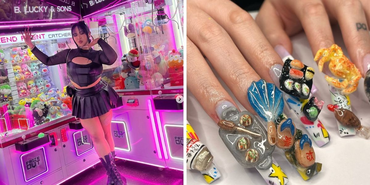A profissional começou a trabalhar com unhas em 2022, inicialmente fazendo designs mais simples, com cores sólidas. Porém, logo percebeu que para se destacar no mercado precisaria ousar e criar algo único como um conjunto de chá da tarde, um design com tema de oceano e um temático do filme “Wicked”.