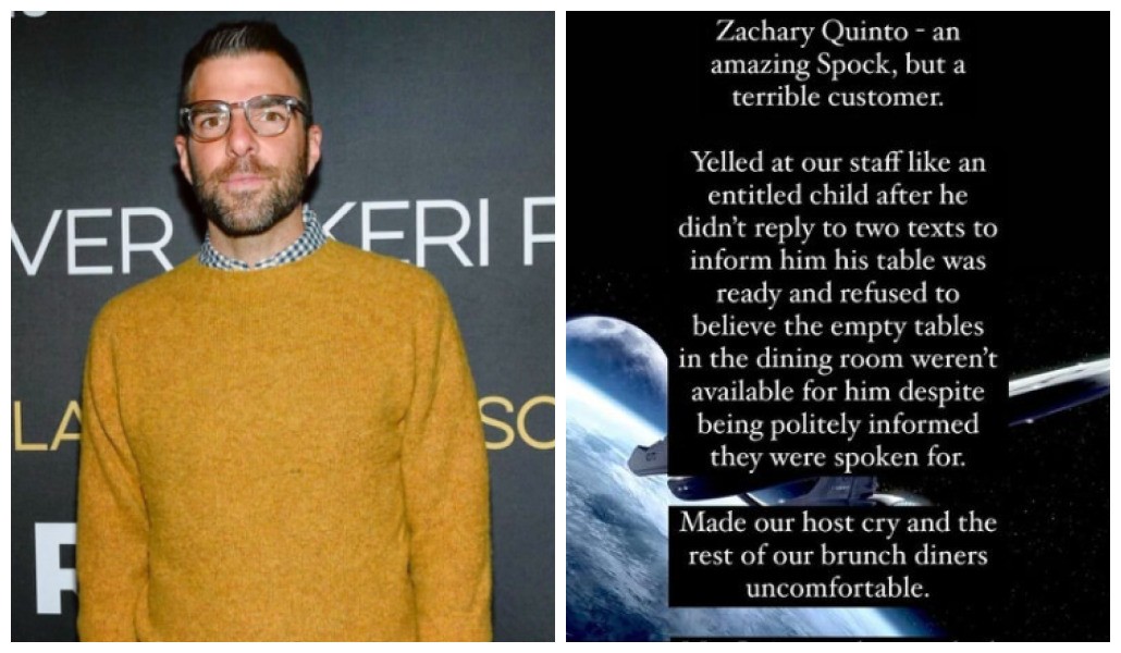 Em um comunicado publicado nos stories e no feed, o restaurante escreve: “Zachary Quinto – um Spock incrível, mas um cliente terrível”. O texto afirma que o ator gritou com os funcionários, “agindo como uma criança birrenta”, após não responder a duas mensagens avisando que sua mesa estava pronta.