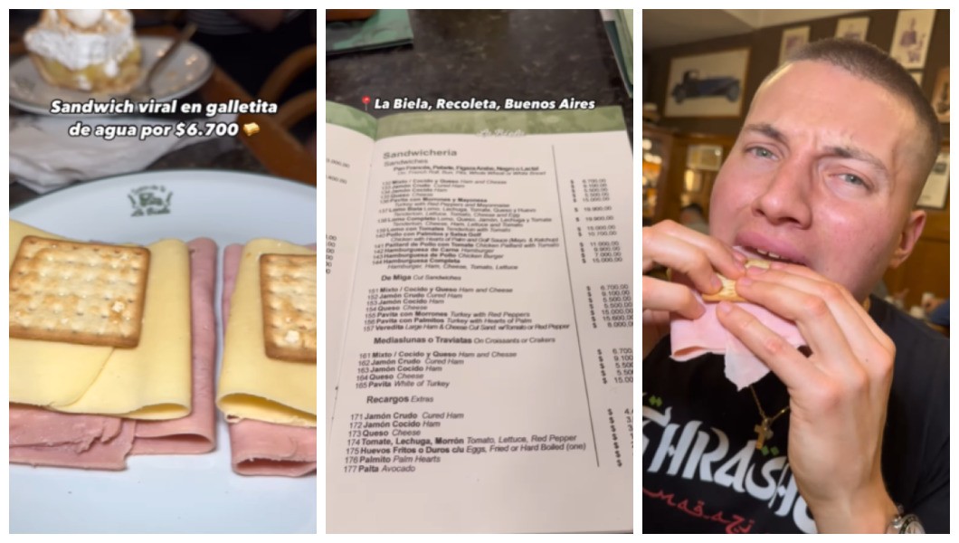 “Você provaria esse sanduíche de biscoito por 6700 pesos argentinos?”, questiona Alexander ao começar o post. Ele explica que o prato é servido no restaurante La Biela, localizado no bairro portenho de La Recoleta, e que o conheceu por conta de um viral no X.