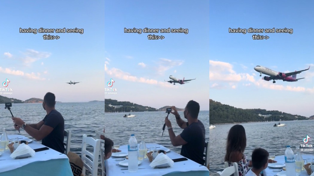 Internauta Ana Iacob filmou o momento em que avistou um avião passando próximo ao estabelecimento. Publicação tem 4,2 milhões de visualizações Um restaurante localizado na Grécia, elevou o conceito de vista diferente durante a refeição. Em um vídeo com 4,2 milhões de visualizações, a usuária do TikTok Ana Iacob filmou o momento em que avista um avião passando bem próximo ao estabelecimento. “Jantando e vendo isso”, diz o texto acima do clipe.